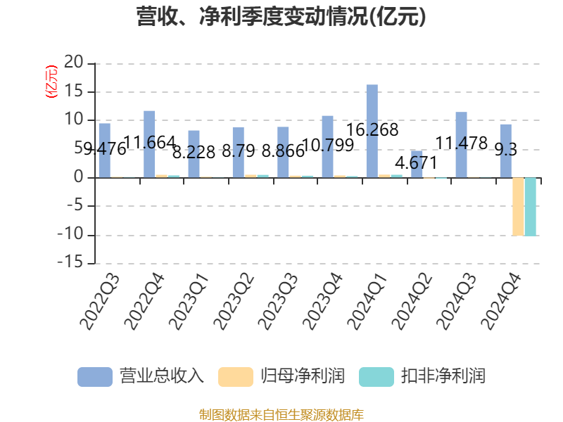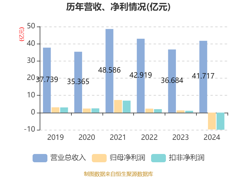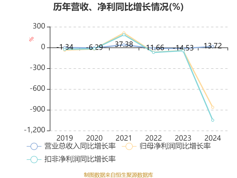 中证智能财讯航锦科技(000818)4月25日披露2024年年度报告。2024年,公司实现营业总收入41.72亿元,同比增长13.72%;归母净利润亏损9.79亿元,上年同期盈利1.28亿元;扣非净利润亏损9.95亿元,上年同期盈利1.05亿元;经营活动产生的现金流量净额为-9271.24万元,上年同期为-8870.26万元;报告期内,航锦科技基本每股收益为-1.46元,加权平均净资产收益率为-32.42%。