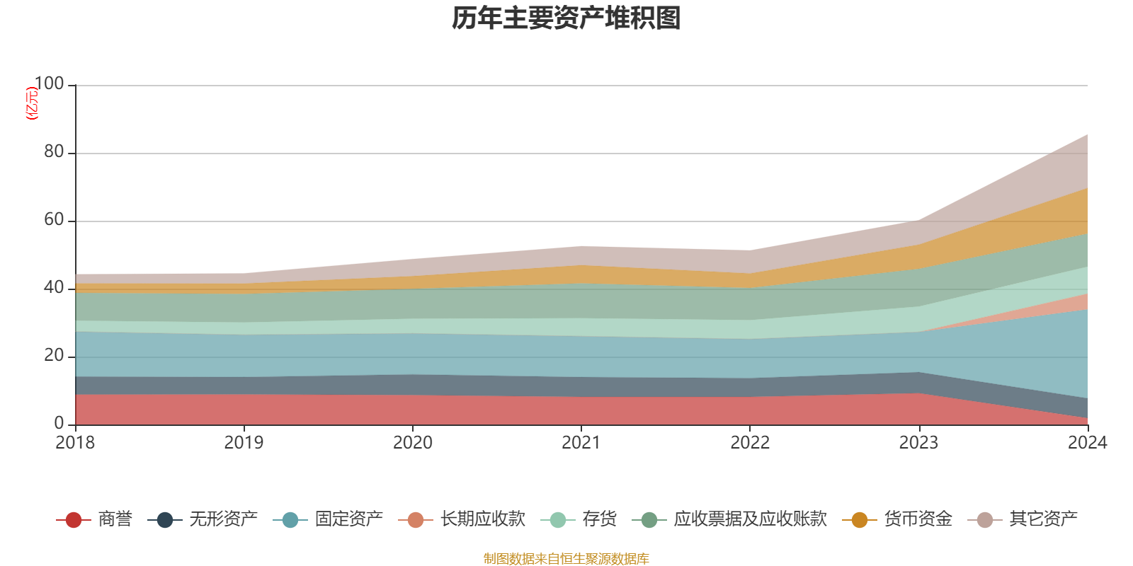 资产重大变化方面,截至2024年末,公司商誉较上年末减少79.44%,占公司总资产比重下降13.07个百分点;固定资产较上年末增加121.42%,占公司总资产比重上升11个百分点;应收票据及应收账款较上年末减少11.83%,占公司总资产比重下降6.98个百分点;长期应收款占公司总资产的5.47%,上年末为0。
