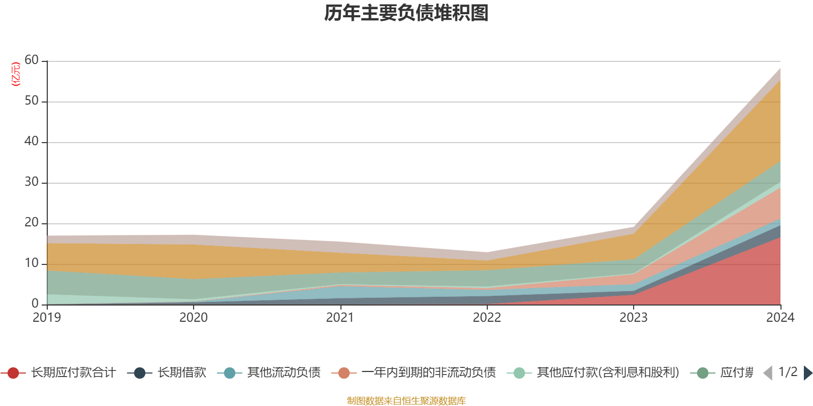 负债重大变化方面,截至2024年末,公司长期应付款合计较上年末增加597.92%,占公司总资产比重上升15.43个百分点;短期借款较上年末增加217.7%,占公司总资产比重上升12.92个百分点;一年内到期的非流动负债较上年末增加207.59%,占公司总资产比重上升4.8个百分点;长期借款较上年末增加199.43%,占公司总资产比重上升1.81个百分点。